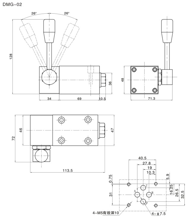 用手操作手動(dòng)桿,使回路中油液的流向得以控制,達(dá)到方向控制之目的。
