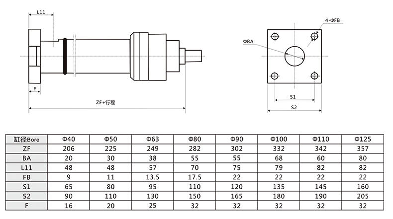 冶金液壓缸尾部方法蘭外形安裝尺寸圖